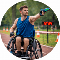 Questa disciplina combina corsa e tiro con la pistola laser. I partecipanti sono impegnati in turni di tiro con pistola laser su postazione dedicata percorrendo poi lo stesso circuito. Presso la postazione di tiro ogni atleta dovrà centrare il bersaglio cinque volte e poi proseguire.